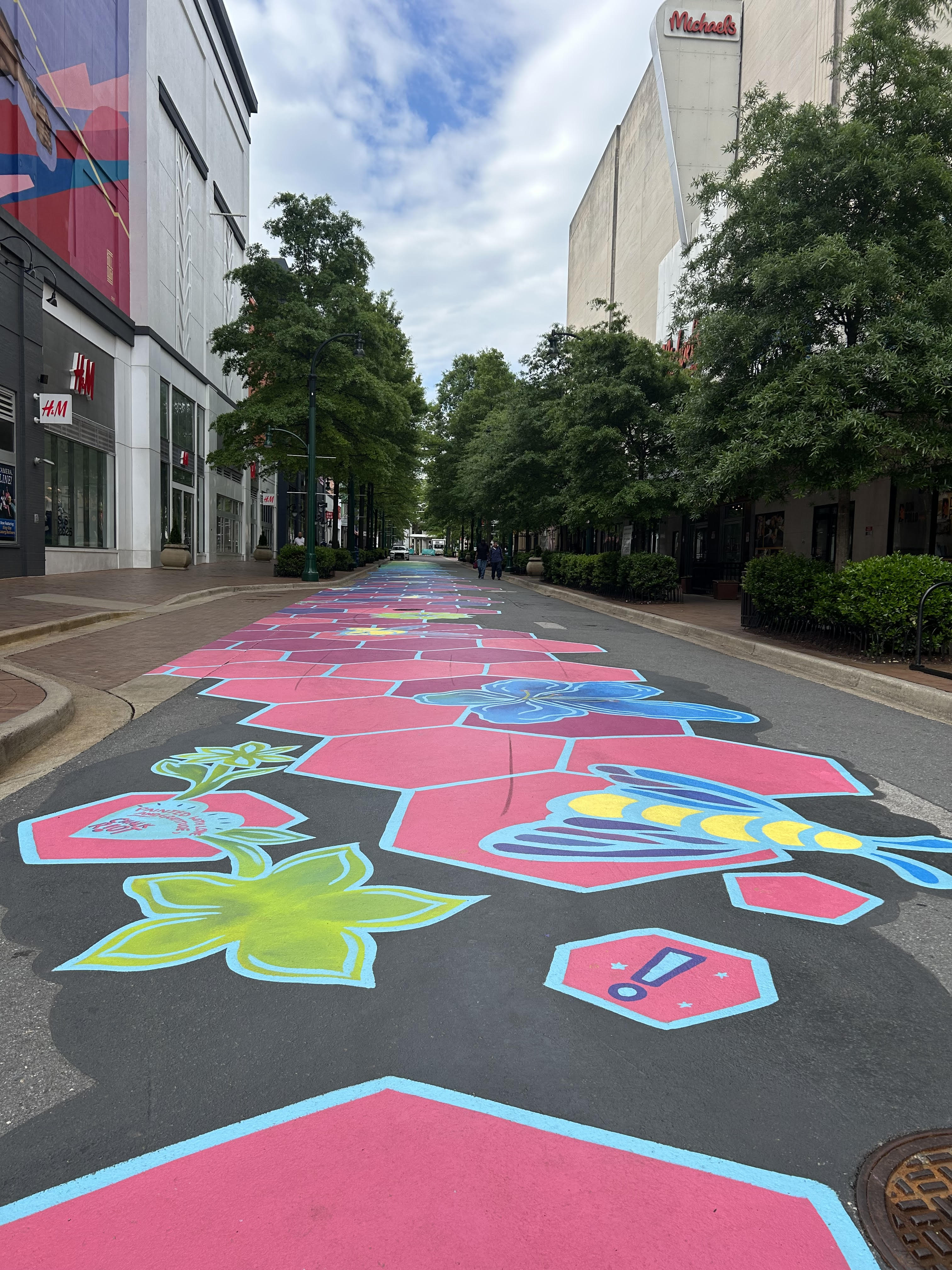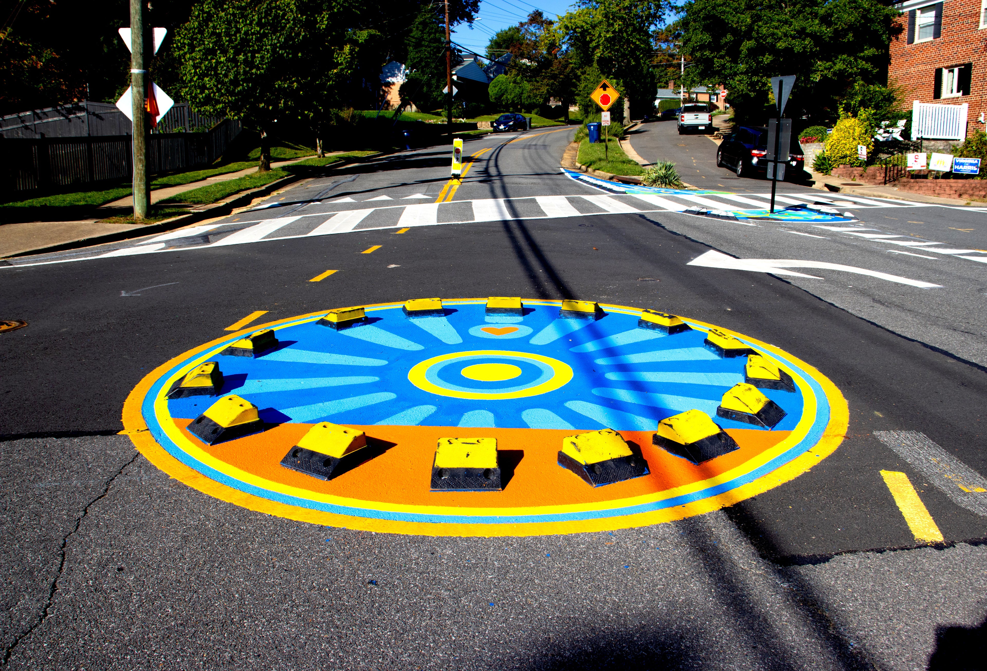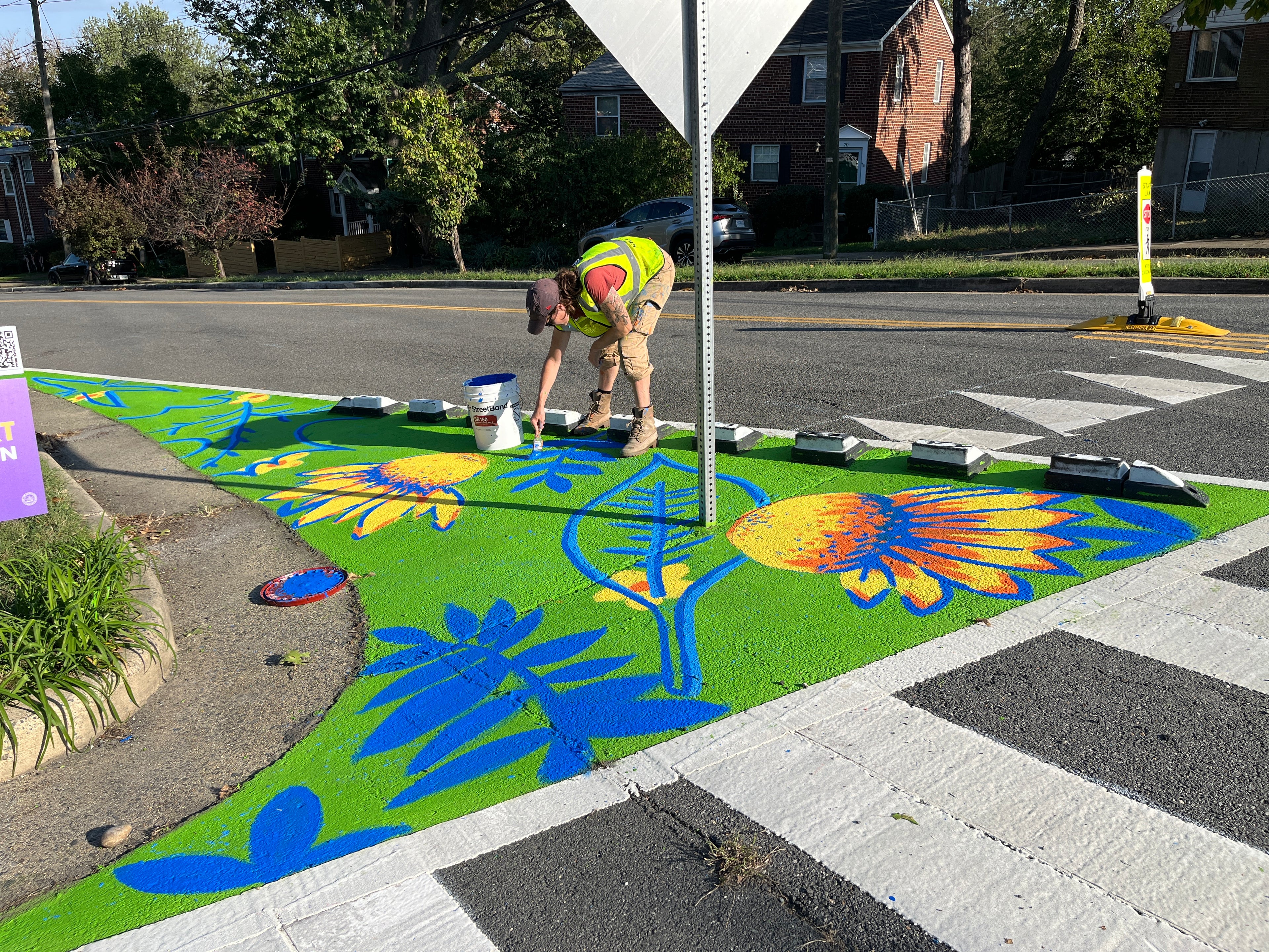 As a StreetBond-certified artist, I specialize in vibrant, ground-level murals that bring color, creativity, and calm to city streets. I’ve had the opportunity to assist on numerous traffic calming murals across the region—collaborative public art projects designed to make streets safer while transforming asphalt into shared, joyful space. My work in these projects reflects my passion for community-driven design, practical beauty, and the power of art to shape how we move through our neighborhoods.